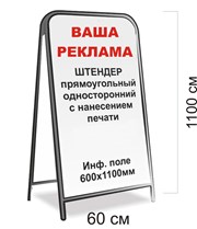 Штендер представляет из себя конструкцию, состоящую из каркаса и рекламного поля с необходимой рекламной информацией. Как правило, в рекламное поле оформляется с помощью самоклеющейся плёнки, на которой было предварительно распечатано необходимое изображение.