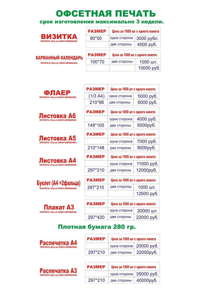 На данной странице нашего сайта Вы сможете найти полную информацию по стоимости изготовления полиграфии.